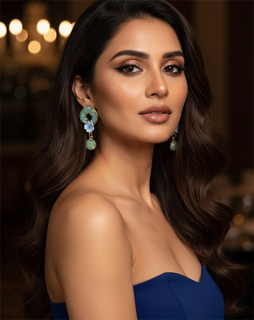 Crafted from durable alloy, these earrings are lightweight and comfortable while offering a premium look. The soft shimmer and elegant color combination make them a stylish choice for parties, festive occasions, celebrations, and special moments. Designed to enhance both traditional and modern outfits, this piece adds a refreshing glow to your overall look.