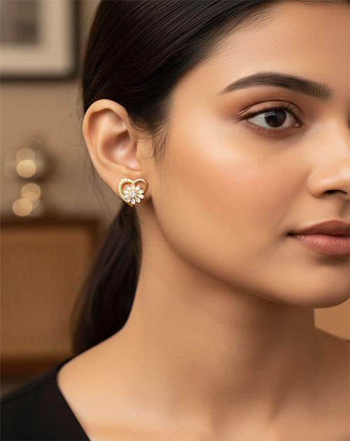 The sleek gold-tone chain perfectly complements the matching heart-design stud earrings, making this set minimal yet graceful. Lightweight and comfortable, it is ideal for office wear as well as special moments.