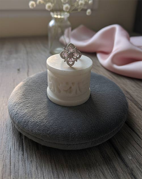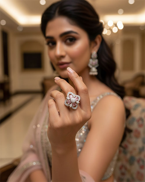 Crafted with high-quality alloy and finished in a premium silver plating, this ring delivers both durability and refined beauty. The pastel pink tones give it a feminine, classy charm, making it perfect for parties, festive occasions, weddings, and elegant evening looks.