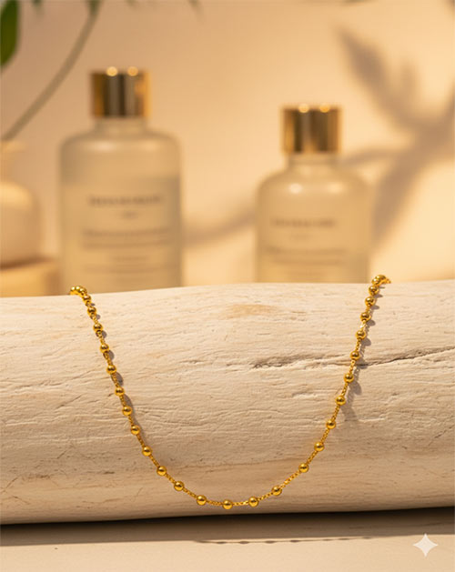The Classic Beaded Gold Plated Brass Chain is designed for those who appreciate subtle elegance and timeless jewellery. Crafted from premium brass metal and finished with rich gold plating, this chain features a refined beaded pattern that adds a graceful shine without being overpowering.