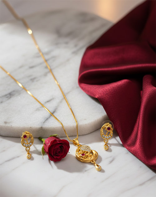 Add graceful charm to your everyday jewellery collection with this Classic Floral Curve Micro Gold Plated Pendant Mangalsutra With Earrings. Crafted from premium-quality brass and finished with elegant micro gold plating, this set offers a refined gold-like shine with a lightweight and comfortable feel.
