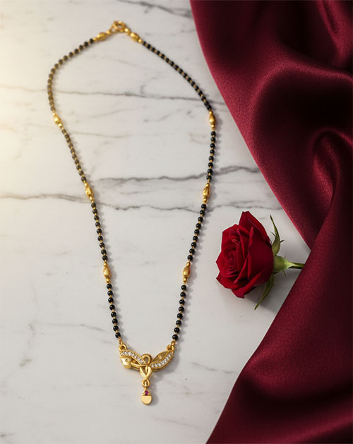 Enhance your everyday elegance with this Elegant Twin Curve Micro Gold Plated Mangalsutra, designed with a graceful double-curve pendant that symbolizes balance and harmony. The sleek black bead chain paired with a refined gold-tone finish. Subtle stone detailing adds a touch of sparkle without overpowering the design, making it a timeless choice for modern women.