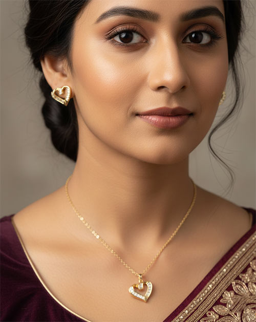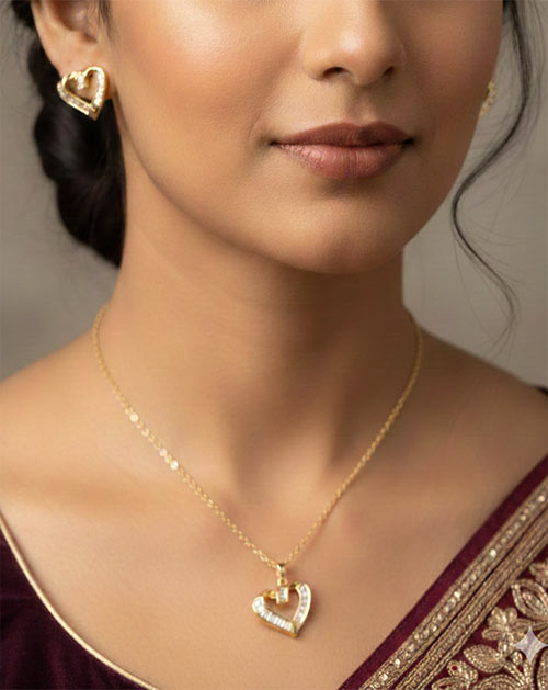 The heart-shaped pendant features a delicate, minimal design that reflects grace and simplicity. Paired with matching heart-design stud earrings, this set is perfect for office wear, gift, birthday as well as special moments.