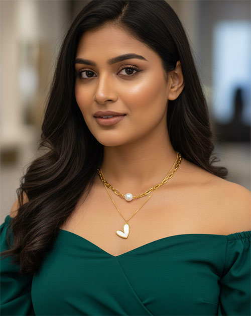 This elegant dual-layer necklace features a beautiful heart-shaped pendant paired with a glossy pearl accent, creating a perfect balance of romance and modern style. Designed with two distinct layers—one bold chain with a pearl bead and one fine chain with a heart charm—this necklace adds depth and sophistication to any look. Crafted from stainless steel with anti-tarnish gold plating, it offers long-lasting shine and durability while remaining lightweight and comfortable to wear. A graceful piece that makes an excellent gifting choice for special moments.
