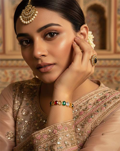 The smooth gold-plated surface enhances comfort and durability, while the anti-tarnish coating helps preserve its brilliance over time. This bracelet pairs effortlessly with festive attire, contemporary outfits, and makes an excellent choice for celebrations, parties, and elegant gifting.