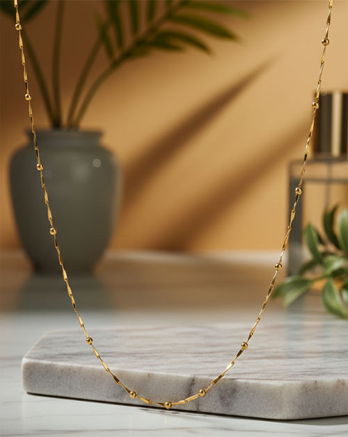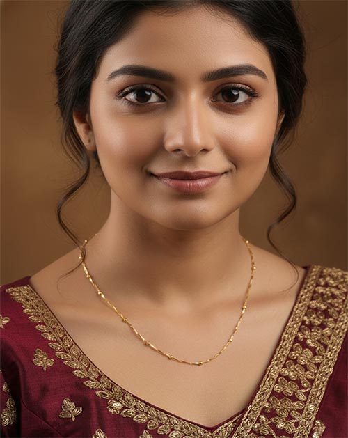 The slim and lightweight structure gives a neat, graceful look on the neck. Allowing the clean chain design to stand out on its own. This chain is ideal for office wear, festivals, celebrations, and party occasions, making it a versatile addition to any jewellery collection. It can be worn solo for a minimalist statement or layered with other chains for a modern look.