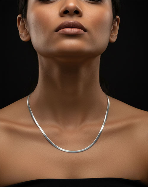 Add effortless elegance to your jewellery collection with the Snack Chain Anti-Tarnish Silver Plated necklace. Designed with a smooth, flexible and minimal silhouette, this chain offers a classy shine that enhances any look. Made from high-quality stainless steel with premium silver plating, it is durable, skin-friendly and resistant to tarnishing. Its sleek finish makes it a perfect choice for daily use, parties, festive occasions, celebrations and stylish gifting.